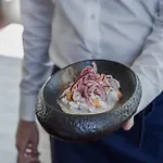 Hver morgen på restauranten på Hotel Mim Sitges & Spa serveres der en buffet. På stedet kan gæsterne nyde poolbar. En række restauranter såsom La Pergola og Bar Restaurante Kansas tilbyder spanske specialiteter, bare 350 meter væk.